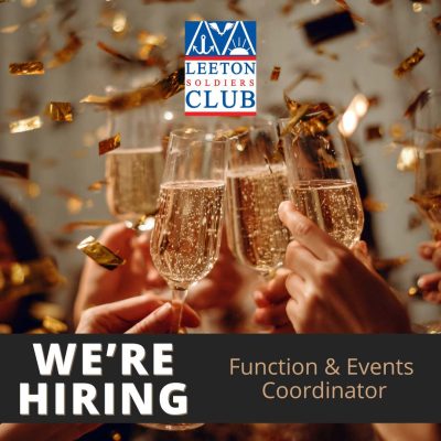 The Leeton Soldiers Club is looking for a friendly, enthusiastic team member to help coordinate and run our day-to-day functions, meetings, large conferences, and events!