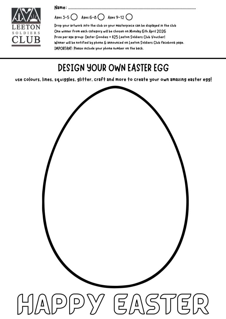 Winners will be notified by phone & announced on Leeton Soldiers Club facebook page.