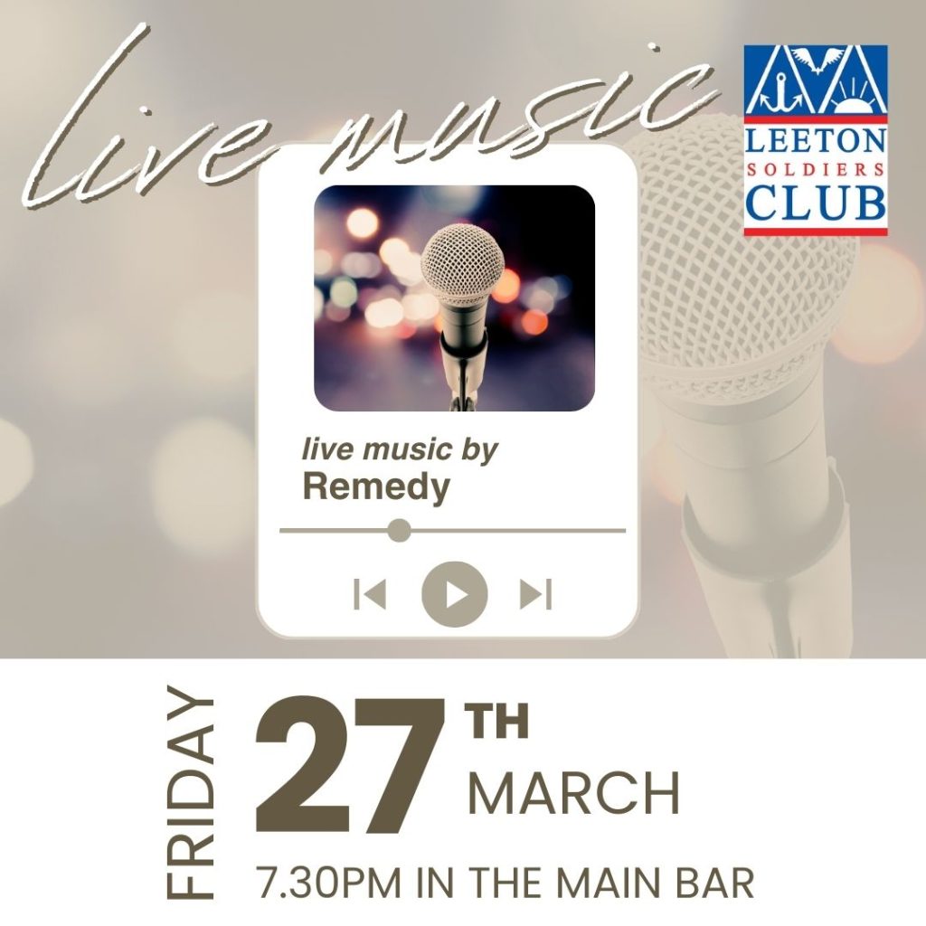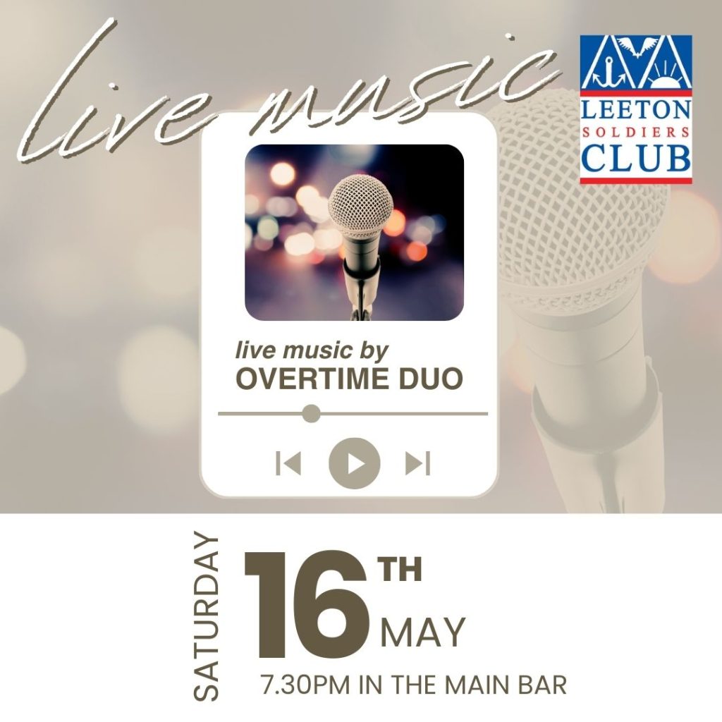 MaySunday 10th May (Mother’s Day) – Remedy 1pm-5pmSaturday 16th – Overtime Duo – 7:30pm-11:30pmSaturday 30th – Double Tones -7:30pm-11:30pm